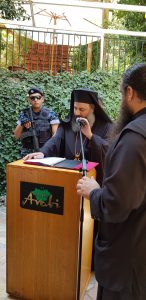 بعد الاستقبال، القى الأرشمندريت نقولا حكيم كلمة نيابة عن مطران الأبرشية عصام يوحنا درويش الذي تغيب نظرا لتواجده في الخارج ومشاركته في مؤتمرين يخصان اوضاع المسيحيين في الشرق قائلا:” ان وجودكم بيننا لهو بركة كبيرة وما يوحد كنيستنا لا يقارن بما يفرقنا فجذورنا واحدة وليتورجيتنا واحدة والمحبة هي التي توحد قلوبنا وتعطي معنى لوجودنا. ومن هنا نأمل ان نصل يا صاحب الغبطة الى اليوم الذي نحتفل به معا بعيد قيامة السيد المسيح، كما لا يسعنا سوى ان نرفع الصلاة من اجل عودة مطراني حلب بولس يازجي ويوحنا ابراهيم“.