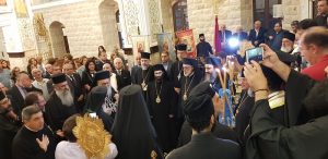 وبدوره، قدم غبطته للكنيسة علبة من صنع دمشقي توضع في داخلها ذخائر القديسين.